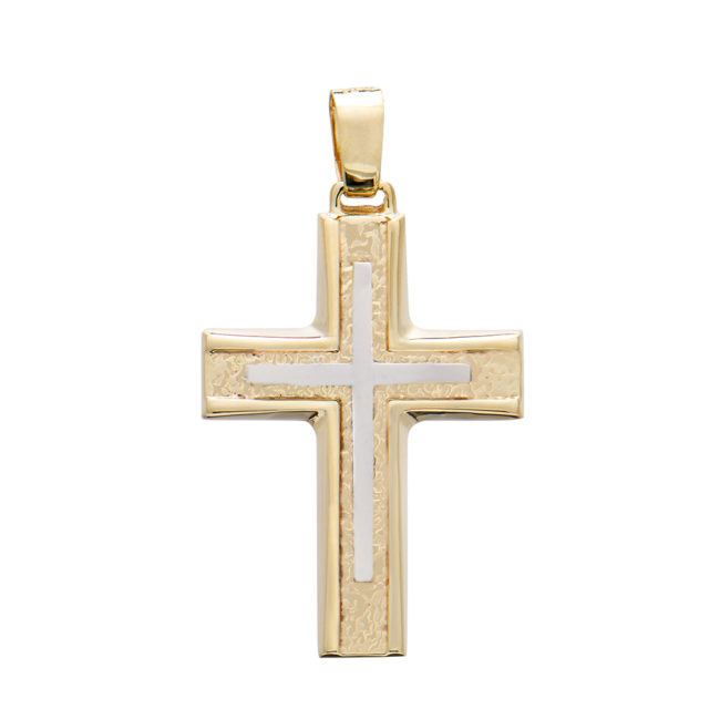 Gold cross K14 “Triantos” Bicolor Mat