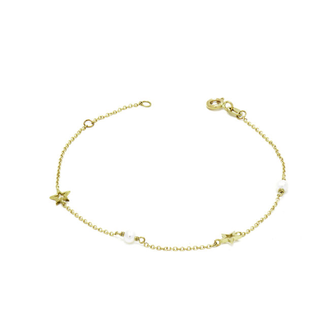 Χρυσό Βραχιόλι Κ9 με Αστέρια και Μαργαριτάρια