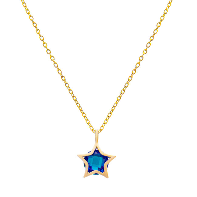 Χρυσό Κολιέ Κ9 ”Blue Stone Star”