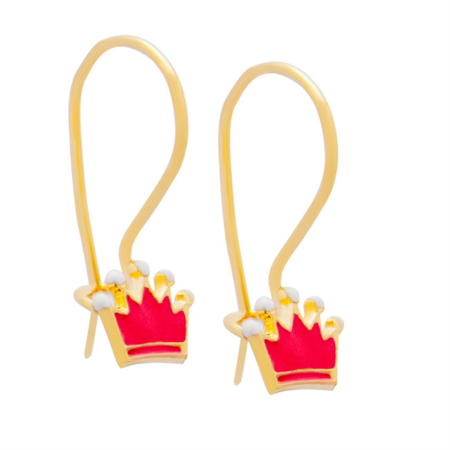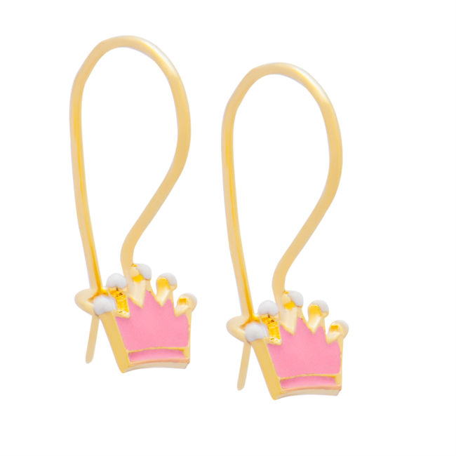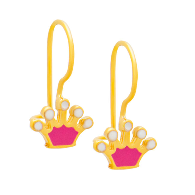 Παιδικά σκουλαρίκια χρυσά Κ9 κρεμαστά ροζ σμάλτο κορώνες