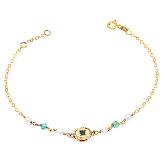 Gold bracelet K14 with green zircon