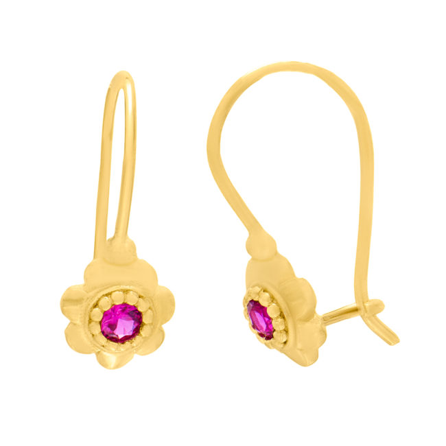 Gold earrings K14 with red zircon