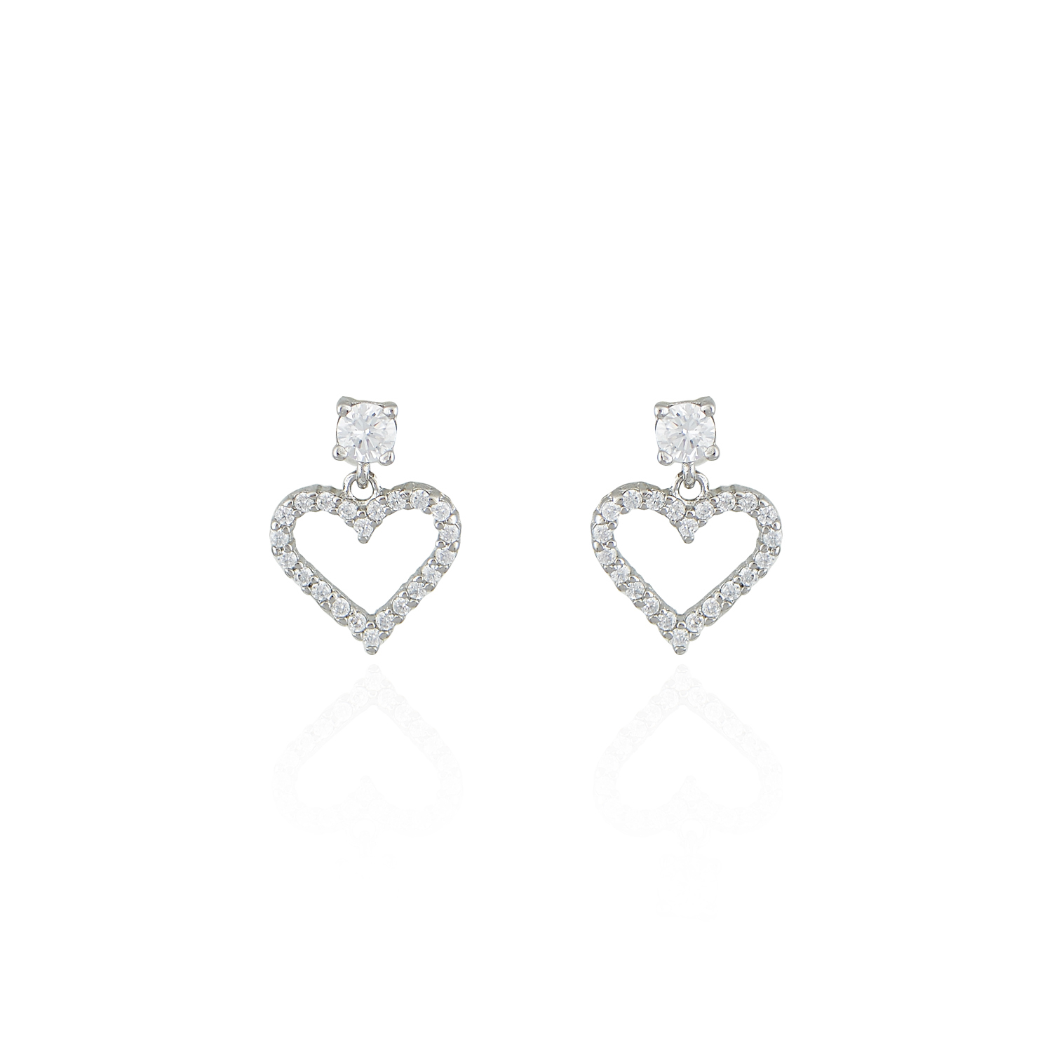 Σκουλαρίκια από επιροδιωμένο ασήμι 925, καρφωτά με μια κρεμαστή καρδιά