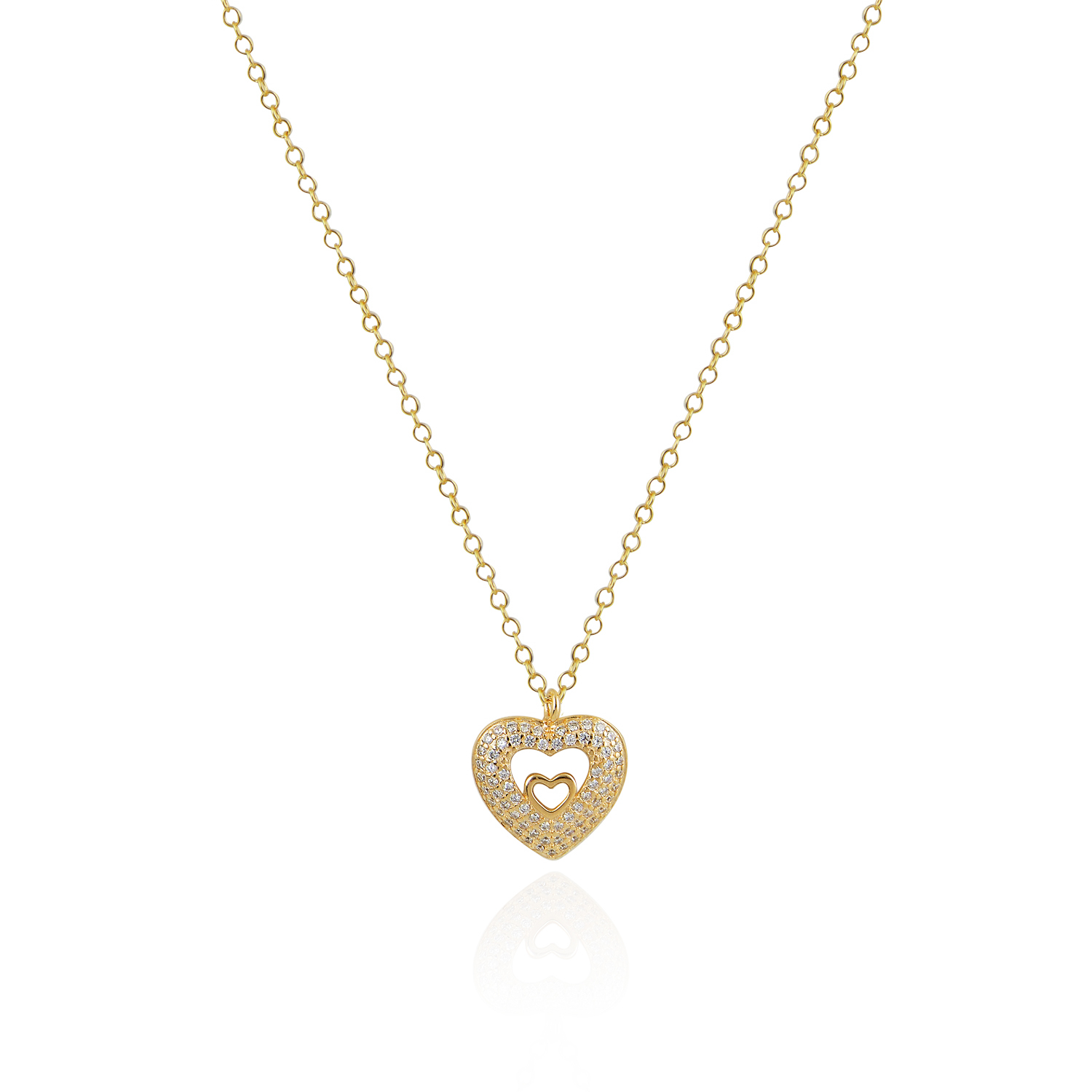 Κολιέ από επιχρυσωμένο (18 καράτια)  ασήμι 925 σε σχήμα καρδίας με λευκές πέτρες ζιργκόν.