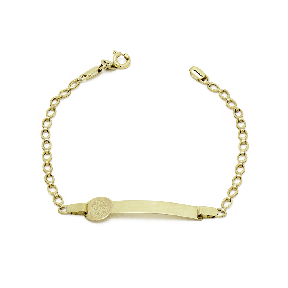 Χρυσή παιδική ταυτότητα 9 καρατίων με απεικόνιση της Παναγίας και του Ιησού.