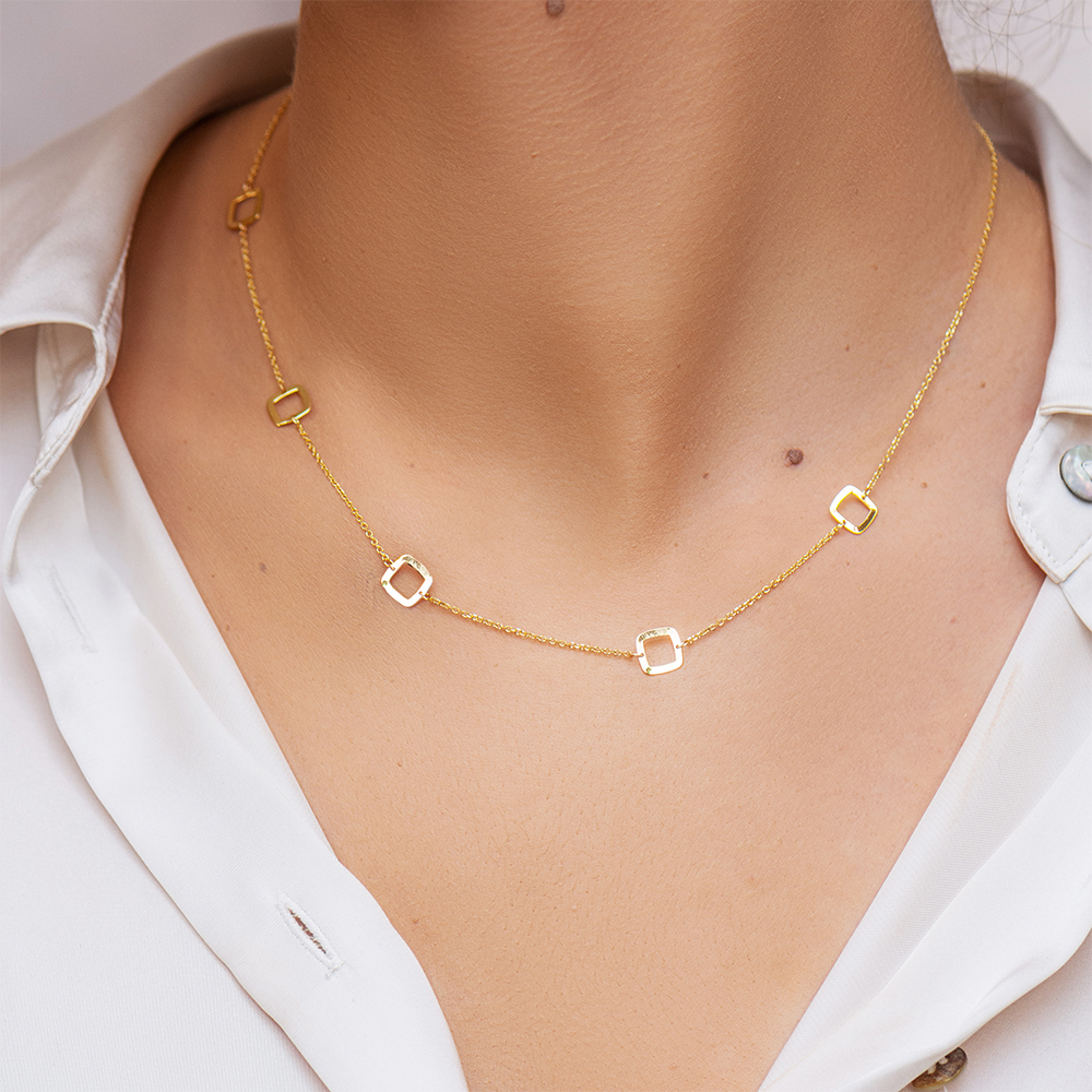 Χρυσό κολιέ 14 καρατίων με περιμετρικά τετράγωνα.