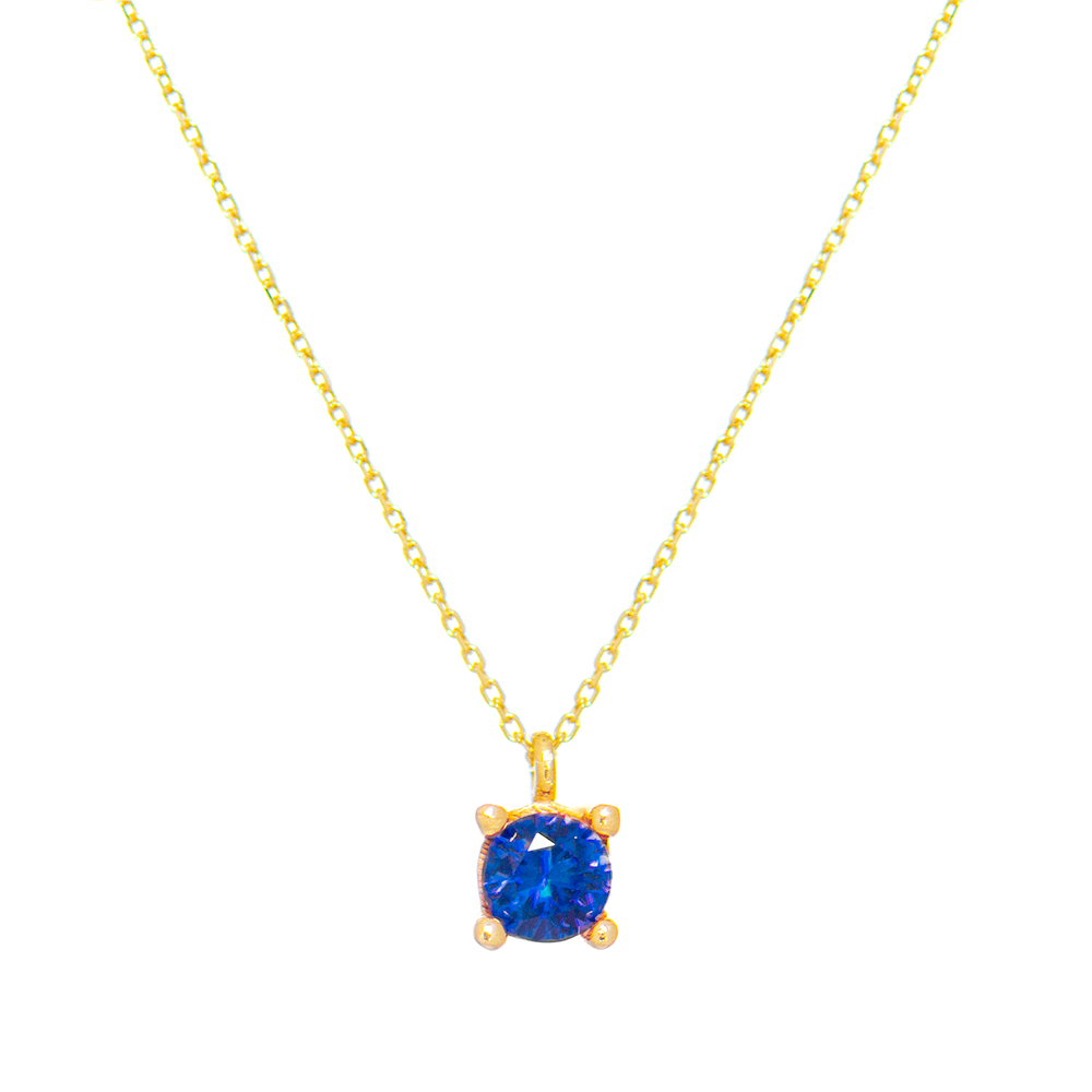 Χρυσό κολιέ 9 καρατίων με τετράγωνο μοτίφ και μπλε ζιργκόν.
