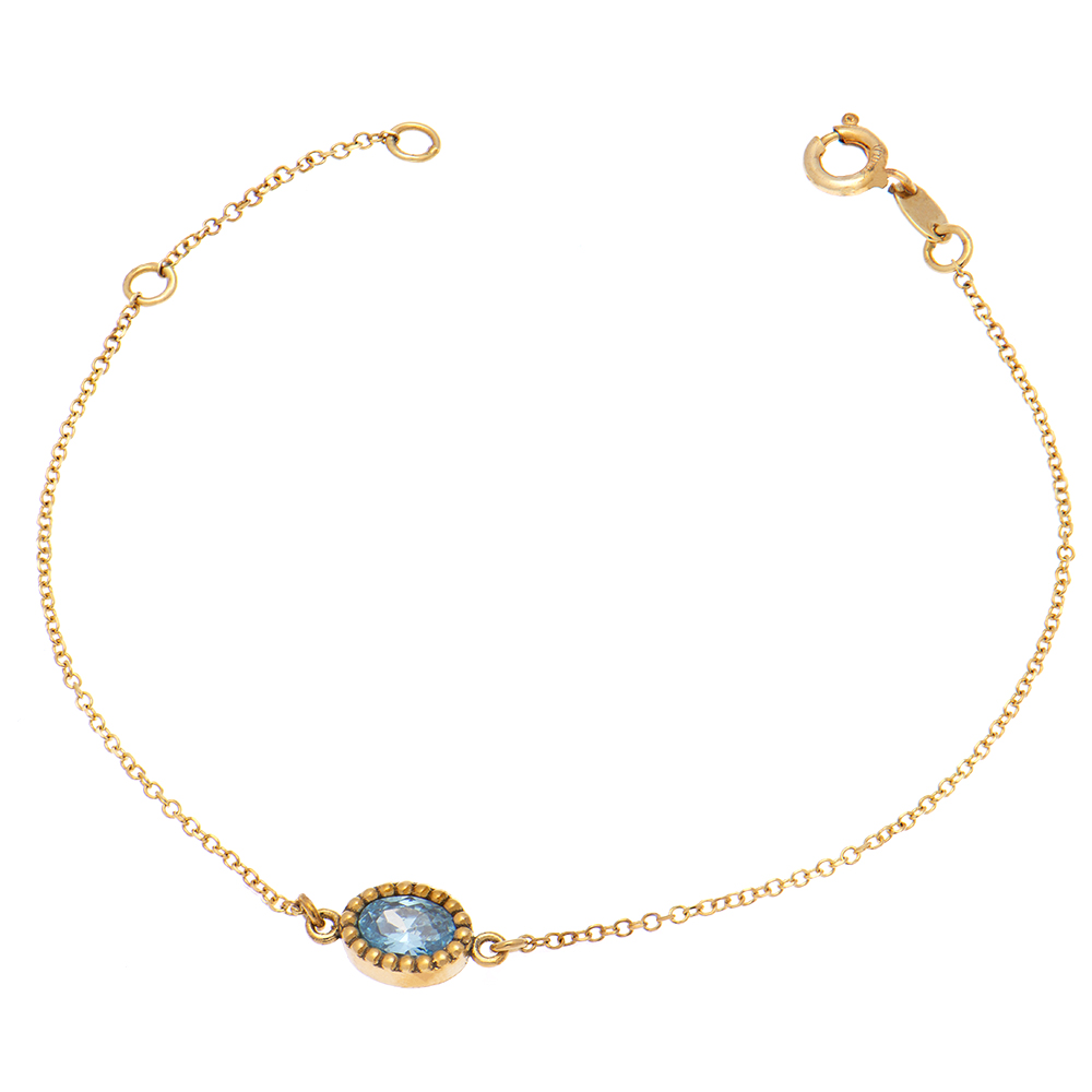 Χρυσό Βραχιόλι Κ14 με Οβάλ Πέτρα London Blue