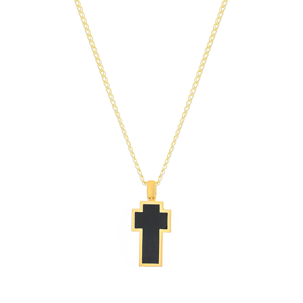 Χρυσός σταυρός από χρυσό εννέα καρατίων διπλής όψεως με μαύρο σμάλτο.