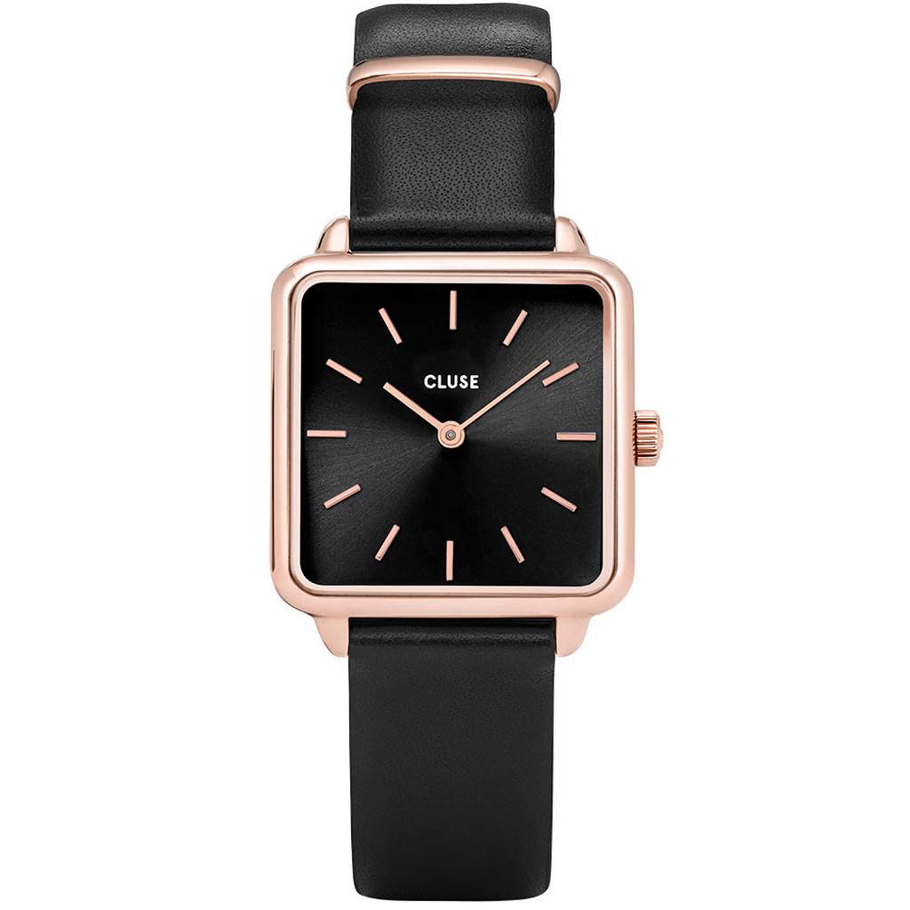 CLUSE La Garconne Rose Gold Black Leather Strap CL60007