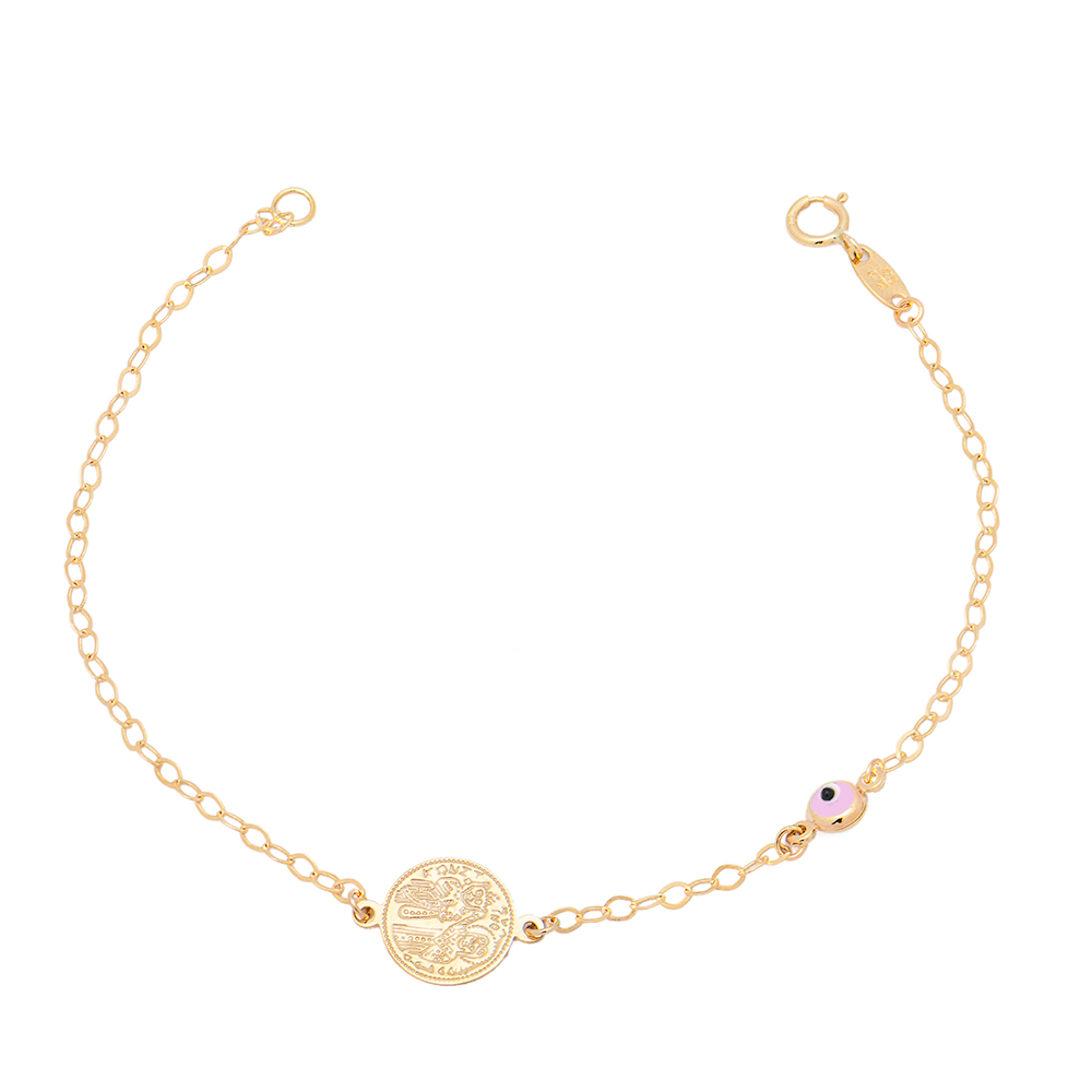 Home Jewellery Kids Bracelets Gold bracelet K9 Christian Charm with pink eye