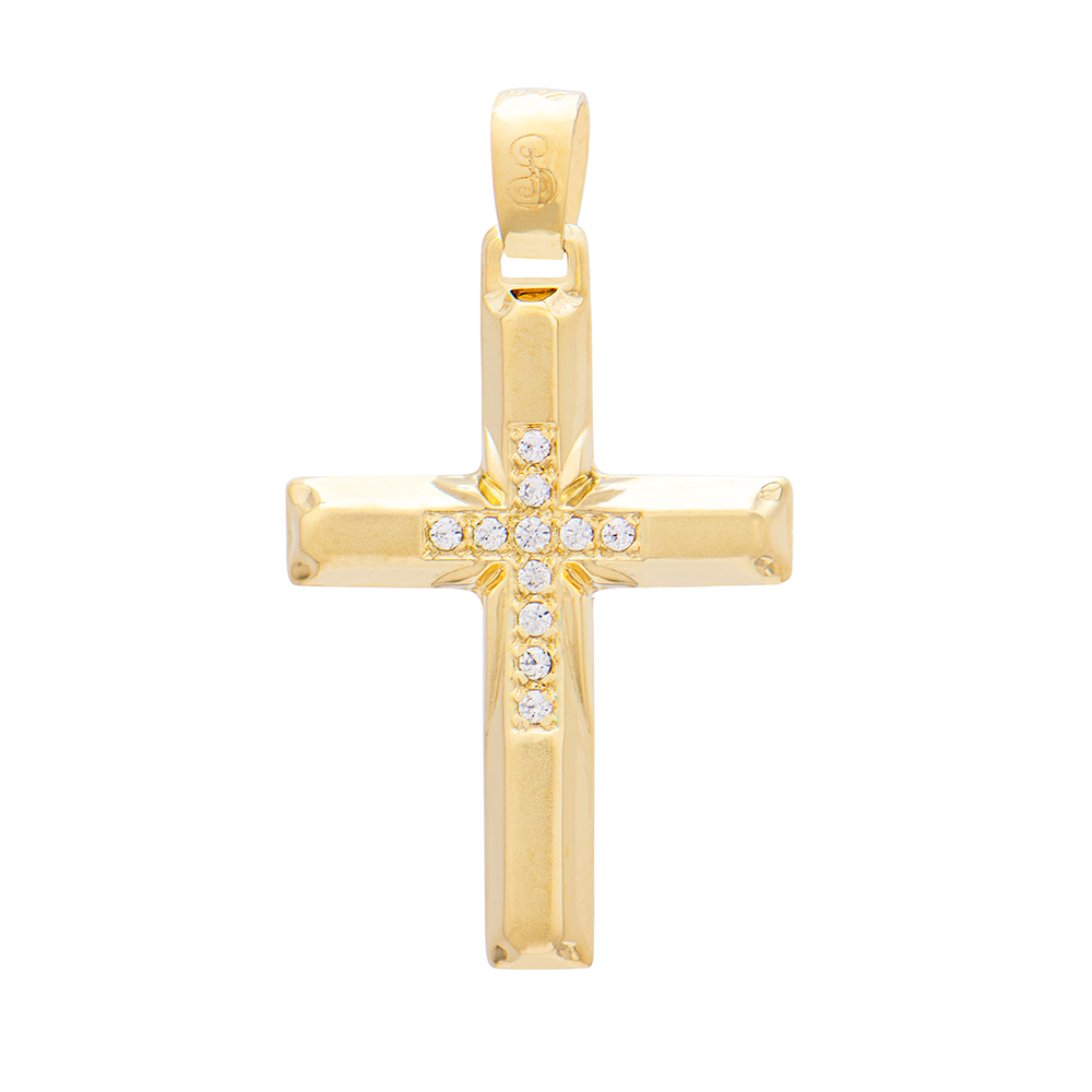 Gold Cross K14 Matte with horizontal and vertical zircon