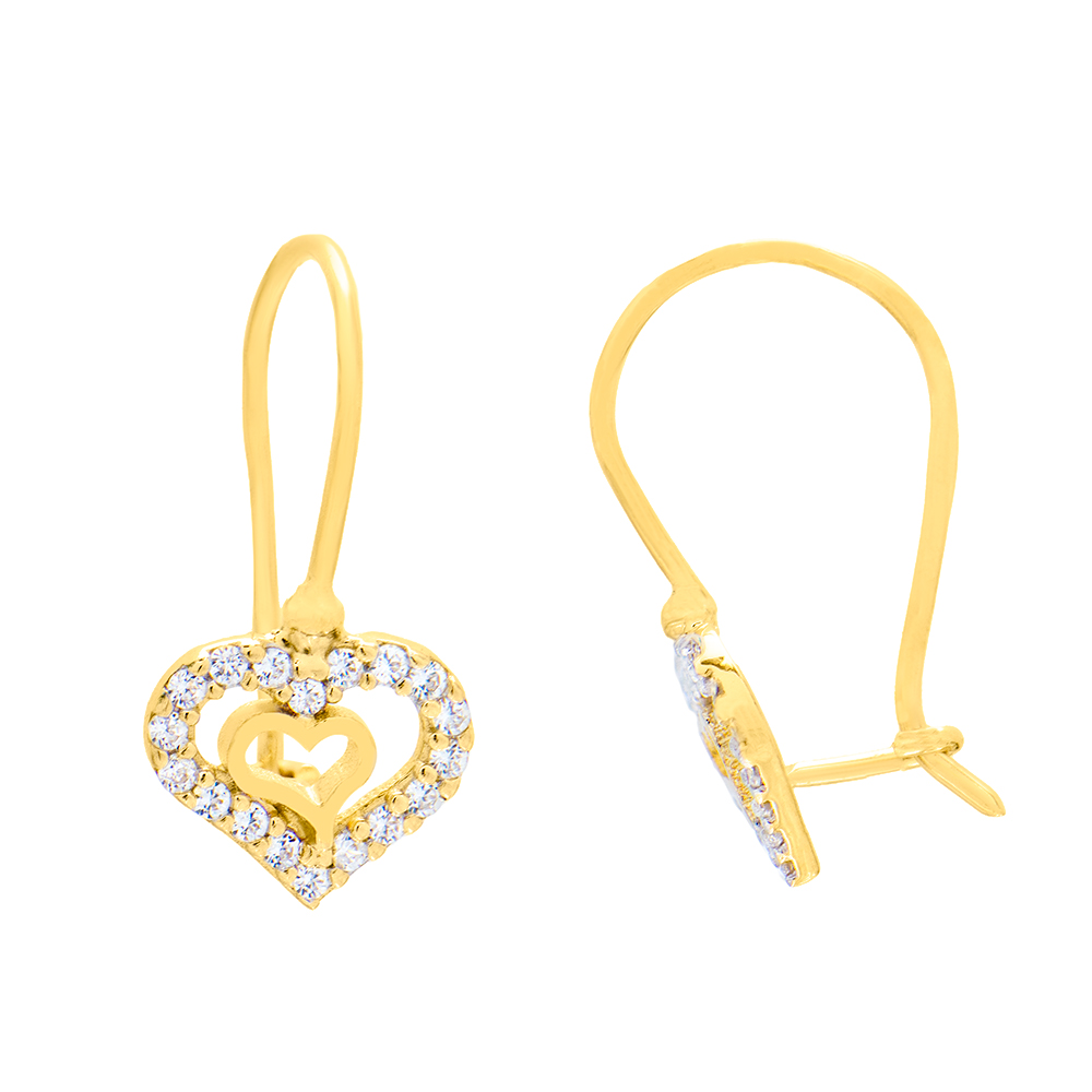 Gold earrings 14 karats heart with white zircon, an ideal present for every woman.