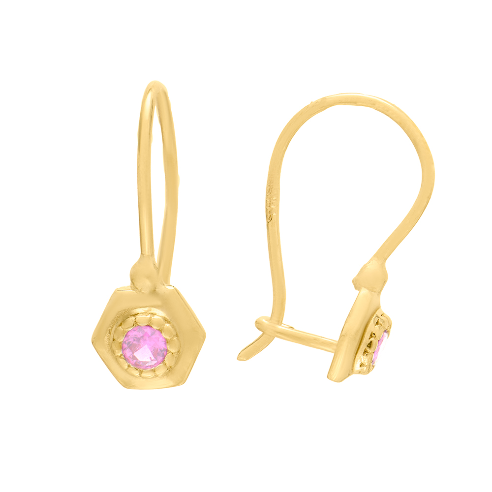 Gold earrings K14 with pink zircon