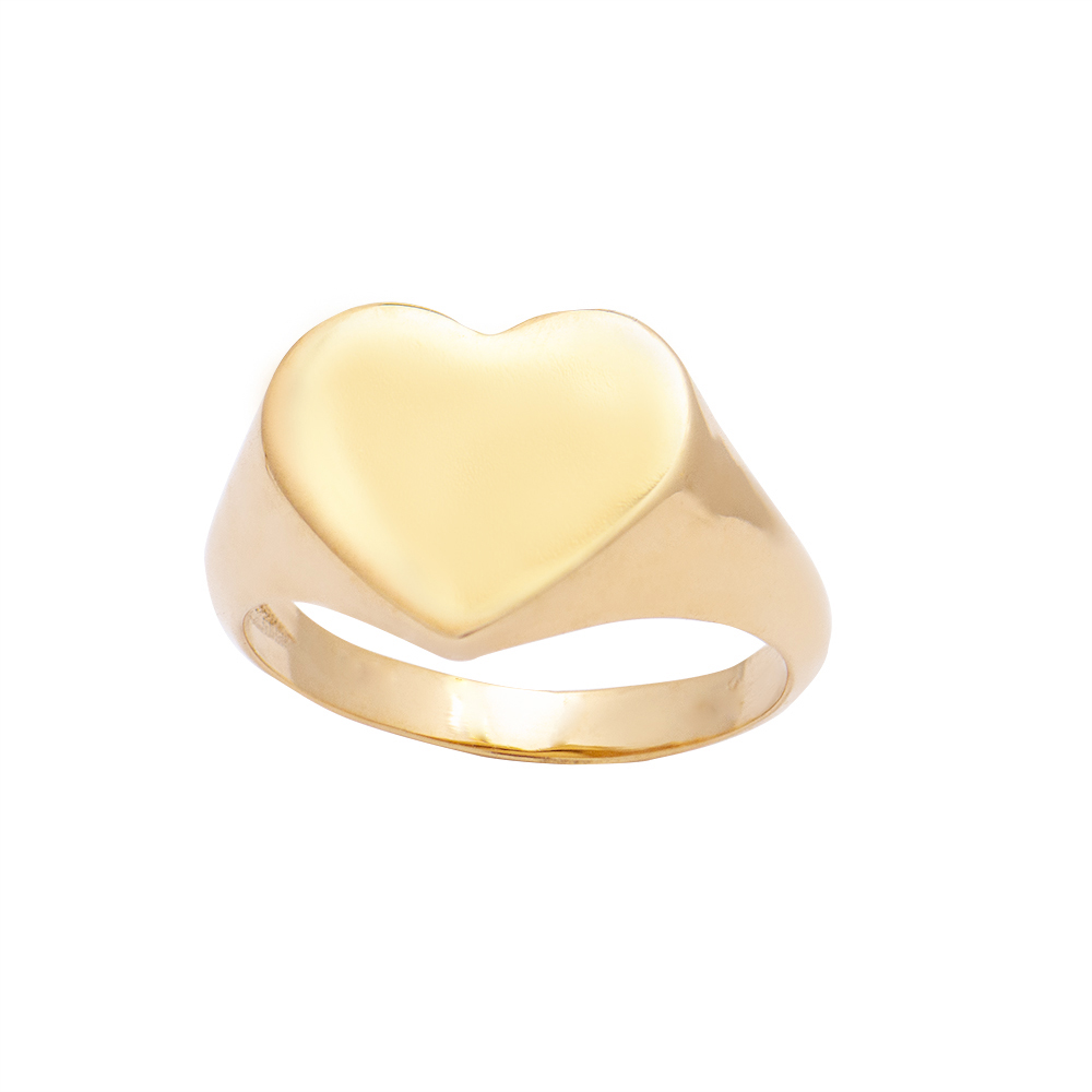 Gold ring 14 karats heart shaped with polished surface.
