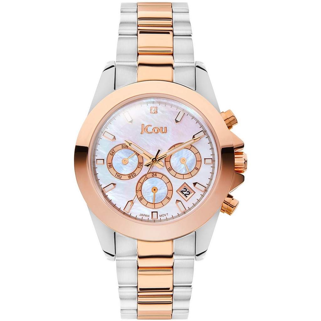 Γυναικείο ρολόι JCOU με δίχρωμο μπρασελέ ασημί-ροζ χρυσό και εντυπωσιακό καντράν.