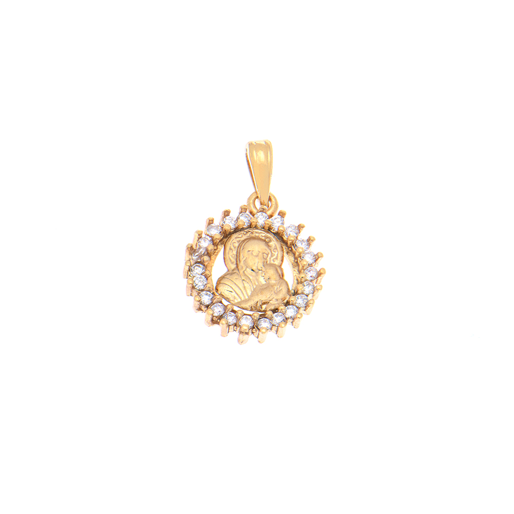 Μοτίφ χρυσό Κ14 Παναγία με ζιργκόν περιμετρικά.