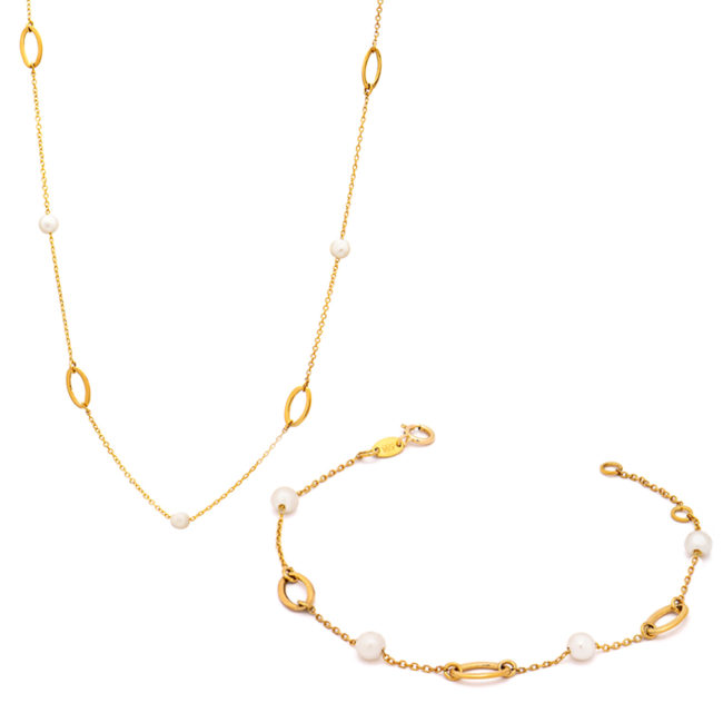 Necklace Bracelet Gold K14 Pearls