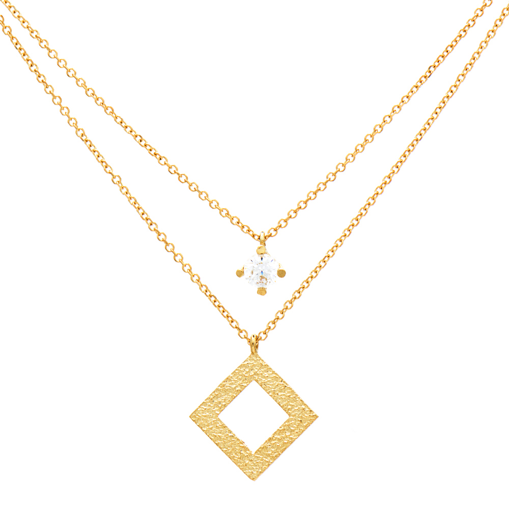Necklace gold K9 Double single stone and rhombus