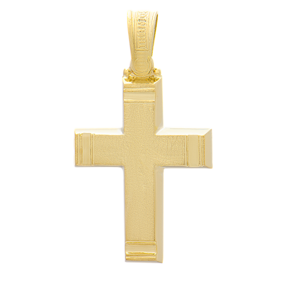 Χρυσός ανδρικός σταυρός 14 καρατίων “Τριάντος” με ματ φινίρισμα, ιδανικό δώρο βάπτισης για αγόρι.