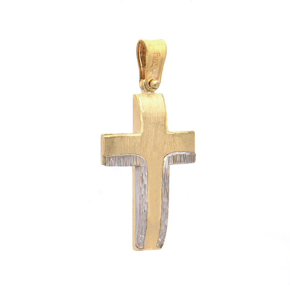 Χρυσός Ανδρικός Σταυρός Δίχρωμος Κ9