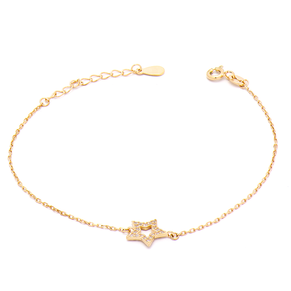 Βραχιόλι από επιχρυσωμένο ασήμι 925 αστέρι με λευκές πέτρες ζιργκόν.